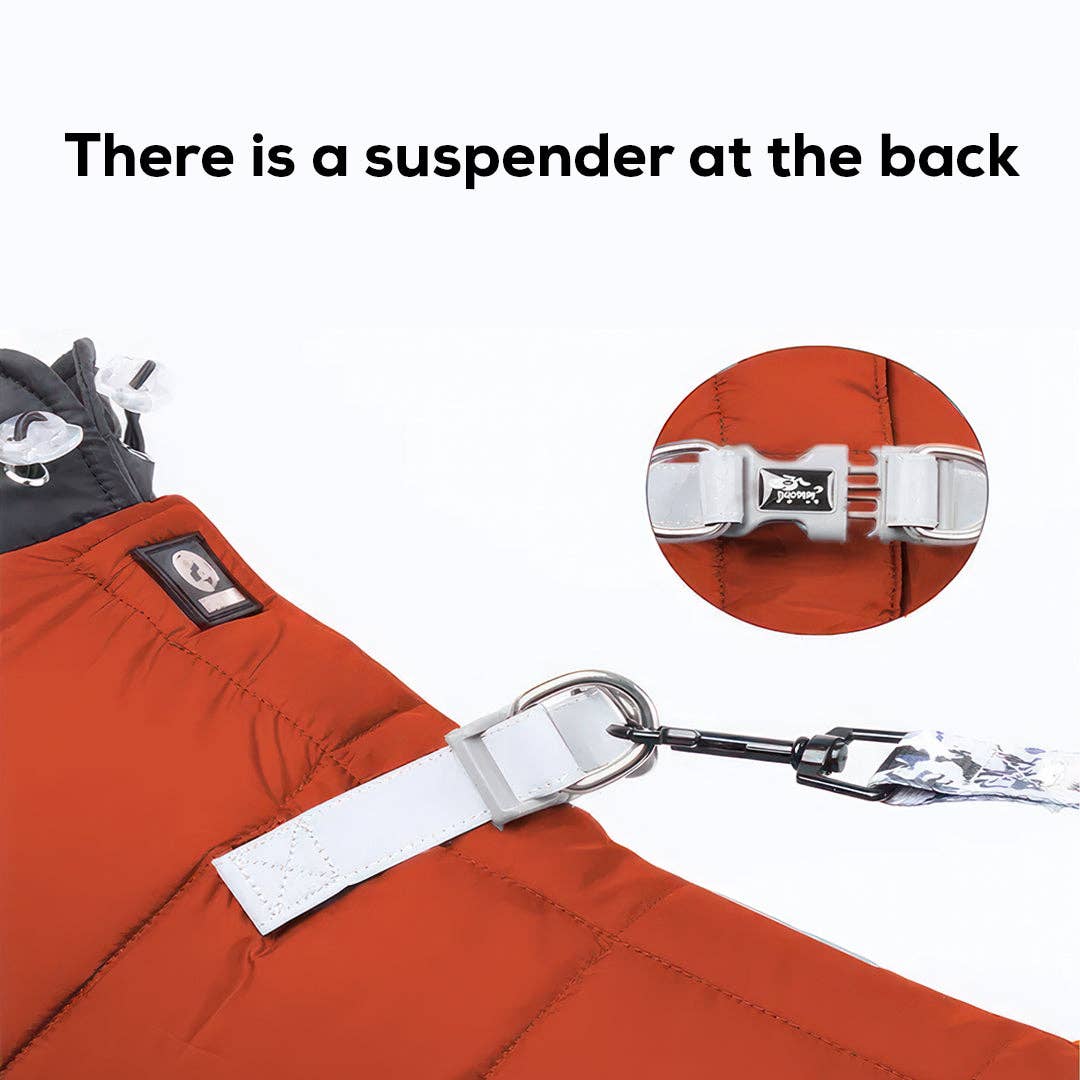 Introducing waterproof small dog coats, the perfect solution for keeping your furry friend warm and protected this winter. With a windproof design and reflective features, this high-quality coat will ensure your puppy stays cozy and safe during outdoor adventures. Don't let the cold weather stop your pup from having fun. Available in orange or blue witha built in harness this is a must have for all owners of smaller breeds - especially those with short hair that need a little extra warmth on colder days.